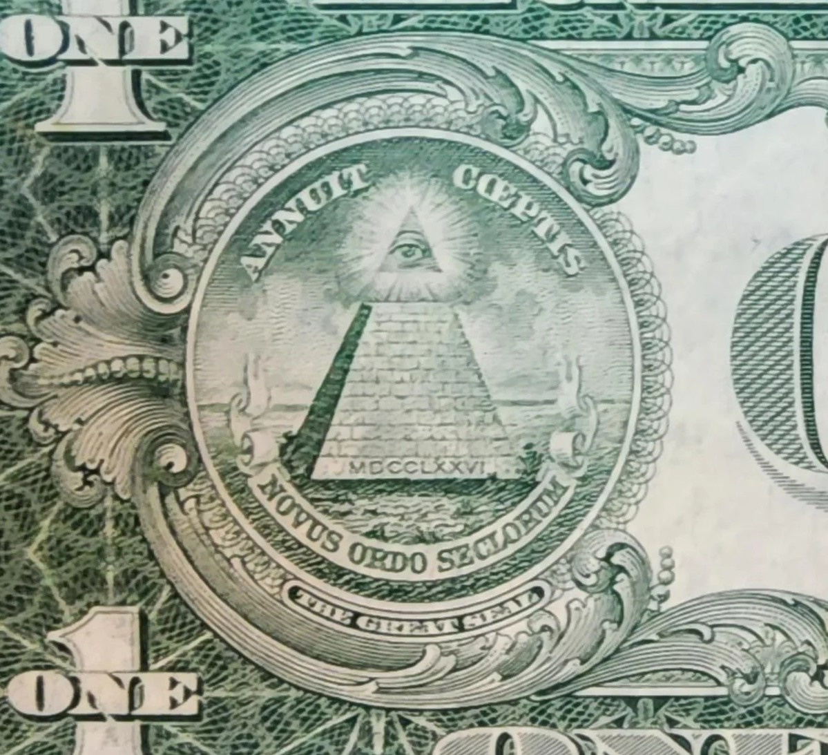 ピラミッドの下の帯にラテン語で「NOVUS ORDO SECLORUM」とあり、「新しい時代の秩序」という意味 です。